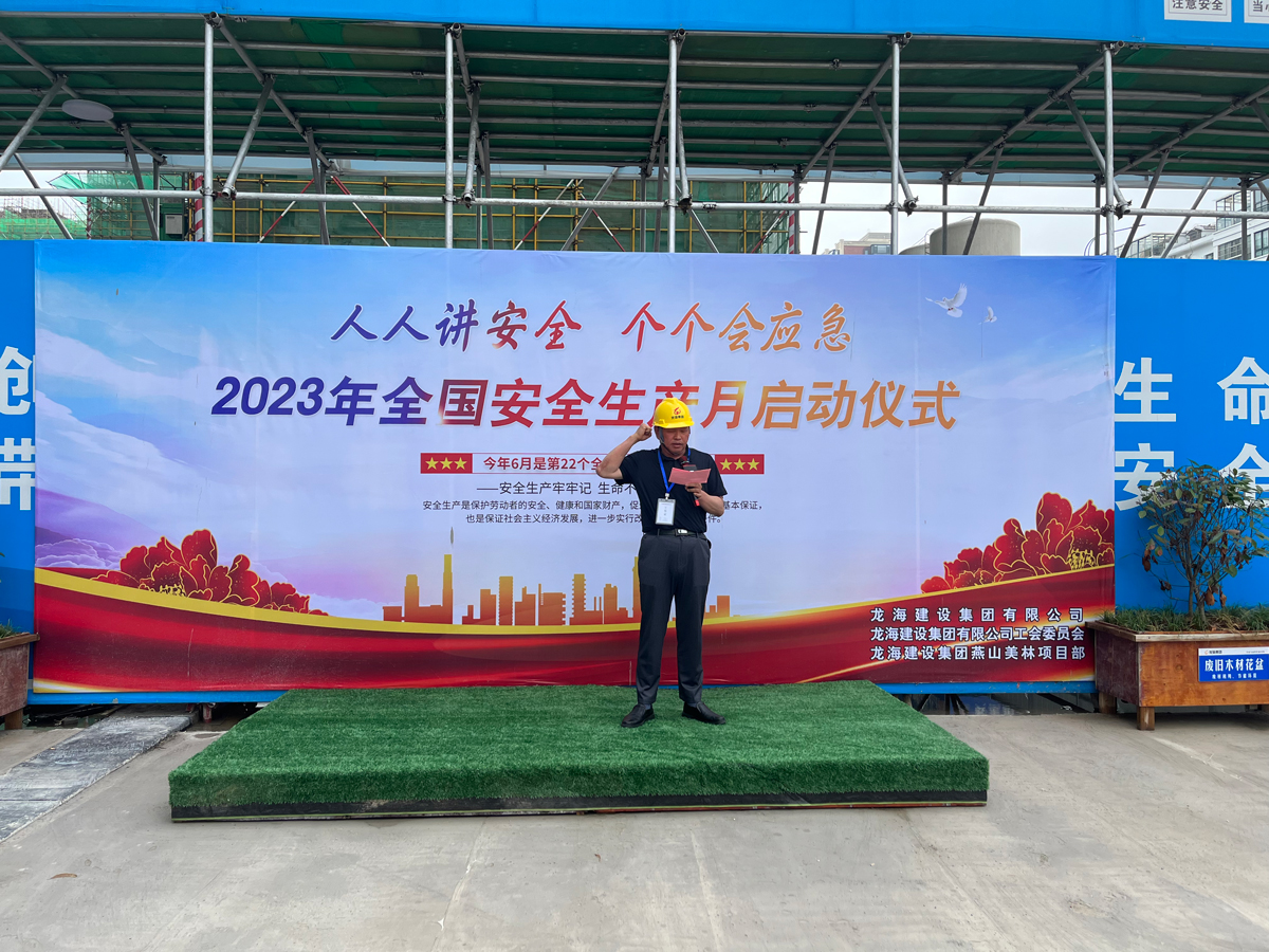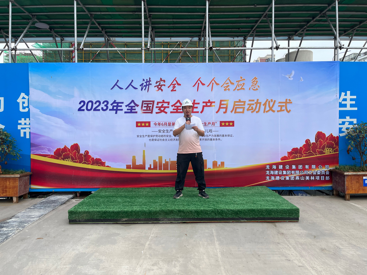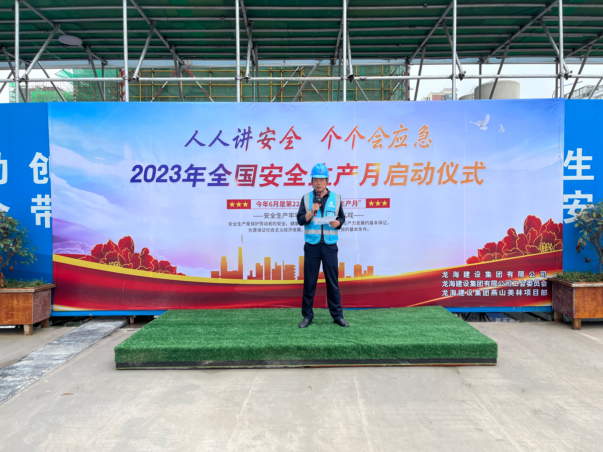 活動在燕山美林項目現(xiàn)場舉行,常務副總王龍海啟動安全生產(chǎn)月活動,并做了動員講話。他表示,要以扎實有效的舉措,規(guī)范管理行為和作業(yè)行為,進一步完善安全生產(chǎn)責任體系,全力保障項目安全生產(chǎn)向好向快發(fā)展。同時提出三點要求:一要堅持人民至上、生命至上,進一步增強安全意識,保證安全生產(chǎn);二要精心組織“安全生產(chǎn)月”宣傳活動,切實把安全知識送到基層一線;三要嚴格執(zhí)行各項制度,完善各項措施,堅決杜絕事故發(fā)生。